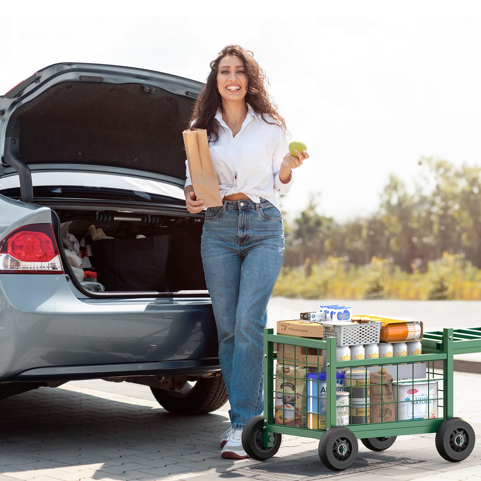 FLINTER Rolling Garden Work Seat with Wheels, Upgraded Heavy Duty Gardenning Cart with Seat - Garden Rolling Stools with Wheels for Seniors, Lawn, Patio & Backyard Gardening, Green