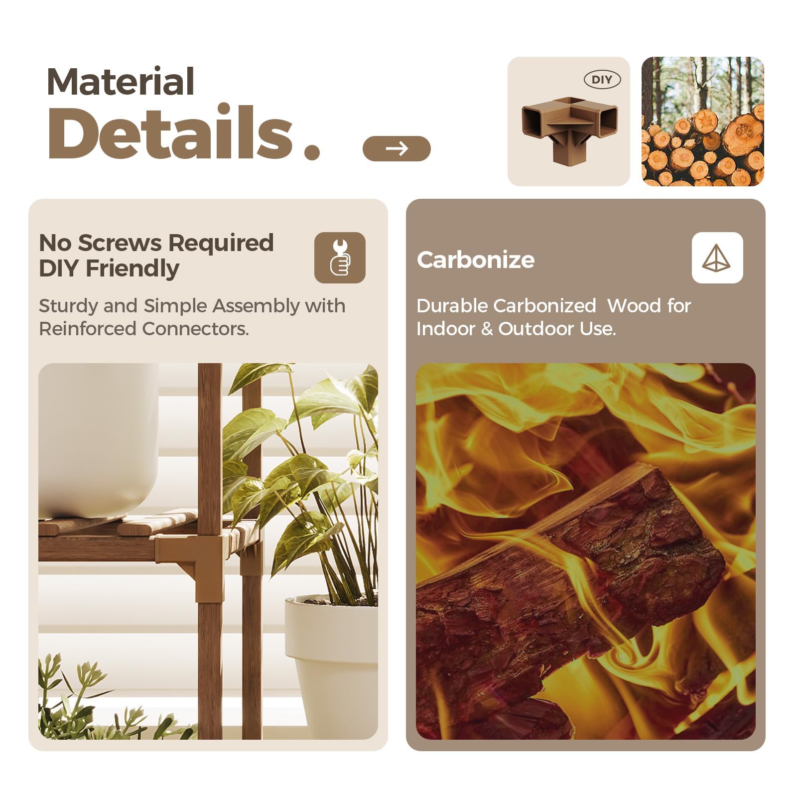 Bamworld Plant Stand Indoor Outdoor Tall Plant Shelf for Multiple Plants Pots Wood Flower Stand Large Flower Holder for Living Room, Patio, Balcony, Garden Decor, Brown