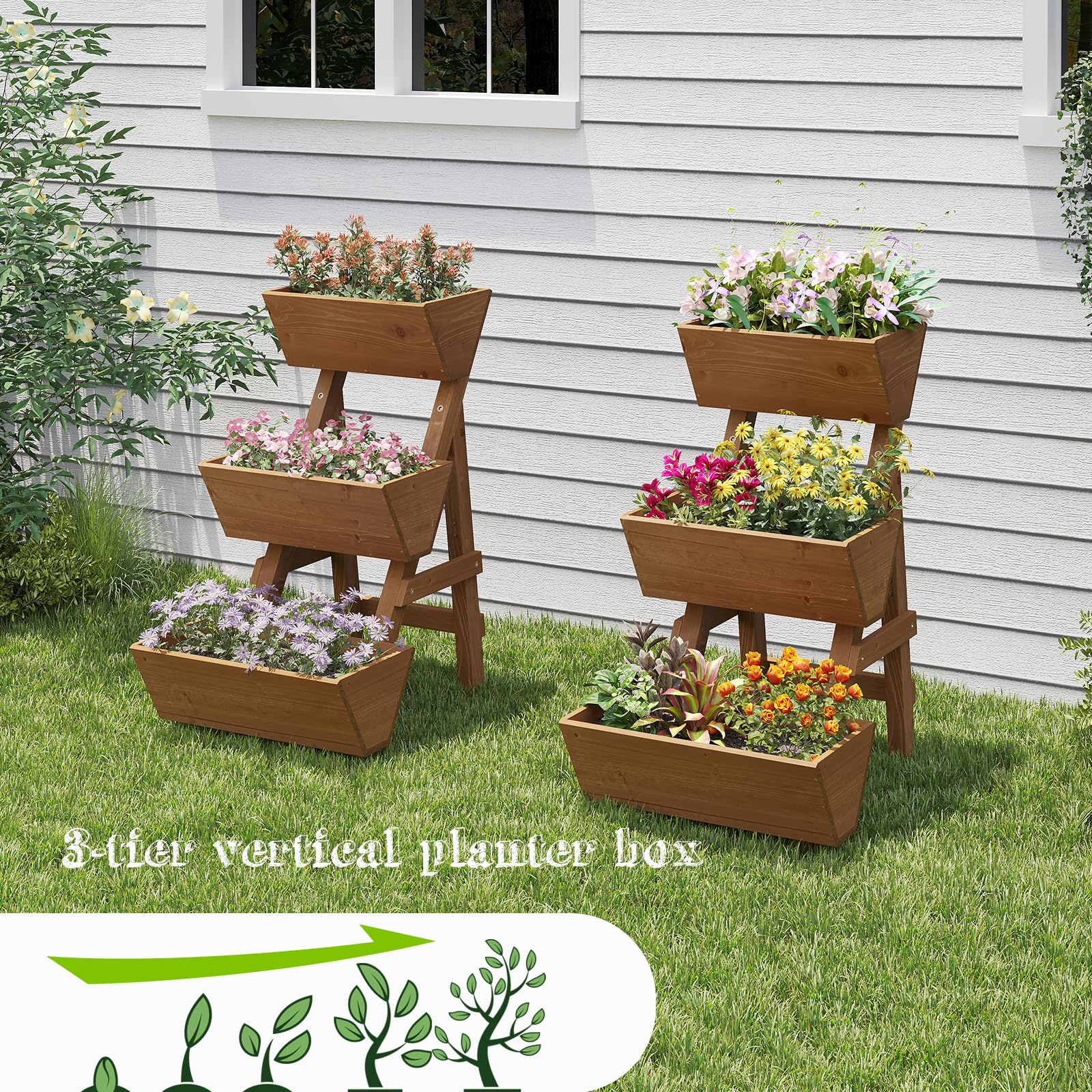 Dawnyard 3-Tiers Wooden Raised Garden Bed Tiered Planter Box Vertical Garden Planter Wood Plant Stand for Patio, Balcony, Freestanding. (Brown S)