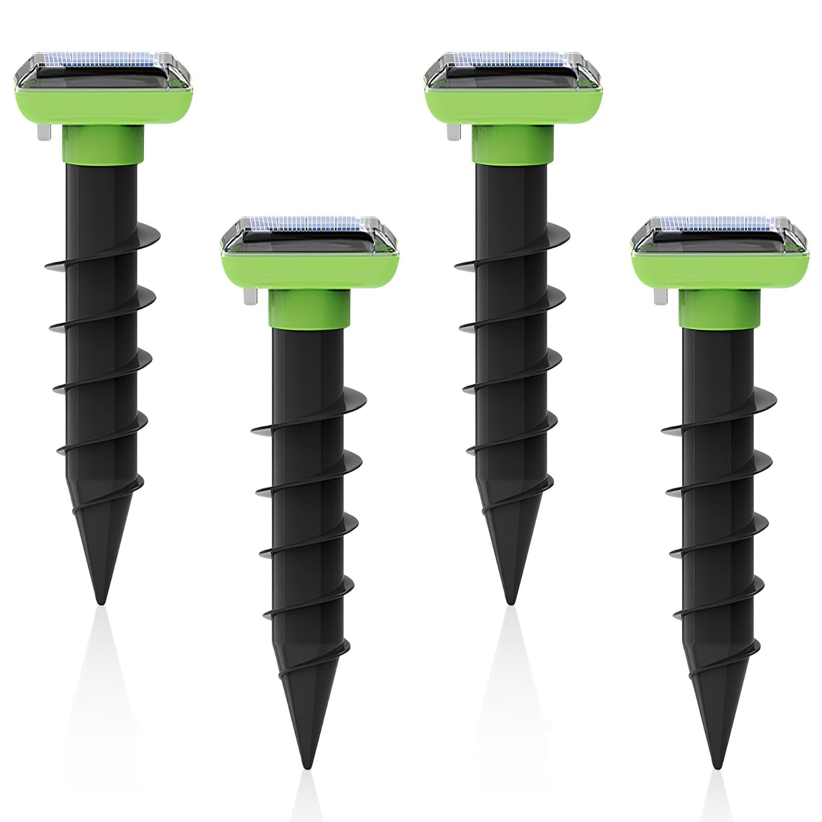 Solar Garden Device – 4 Pack, IP66 Waterproof, Solar Rechargeable, Covers up to 75 sq. ft., Quick 2-Hour Charge, 8–10 Hours Operation, Weather-Resistant Lawn & Garden – eco-Friendly Lawn Spikes,